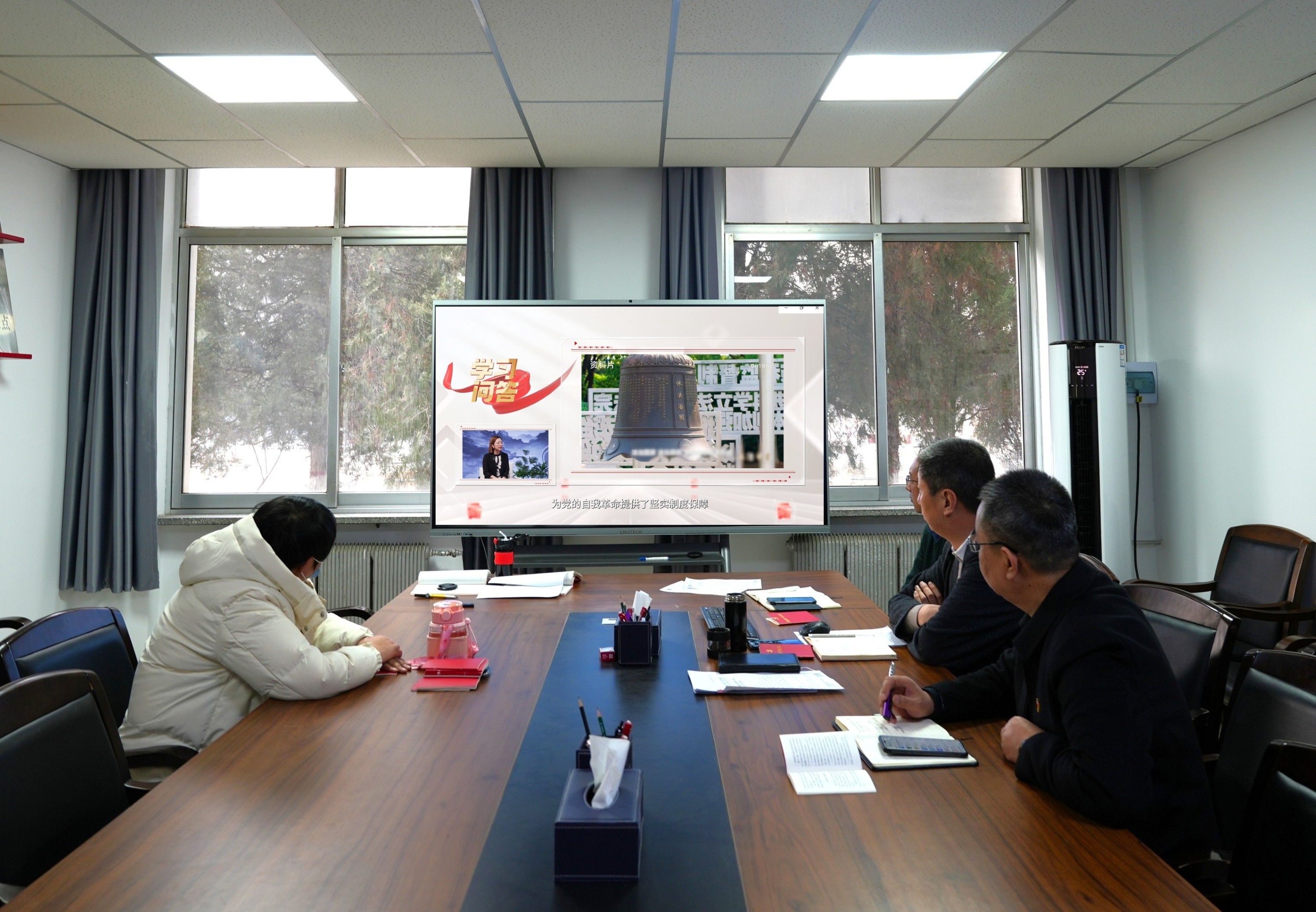 会上传达学习了习近平总书记在2024年中央经济工作会议上的重要讲话精神,集体重温学习《中国共产党章程》,与会人员集中观看学习时报理论网《为什么说全面依法治国是国家治理的一场深刻革命》视频课程和《2024年“时代楷模”——最美铁路人:单杏花》视频,结合学习内容围绕学院年末重点工作进行研讨。