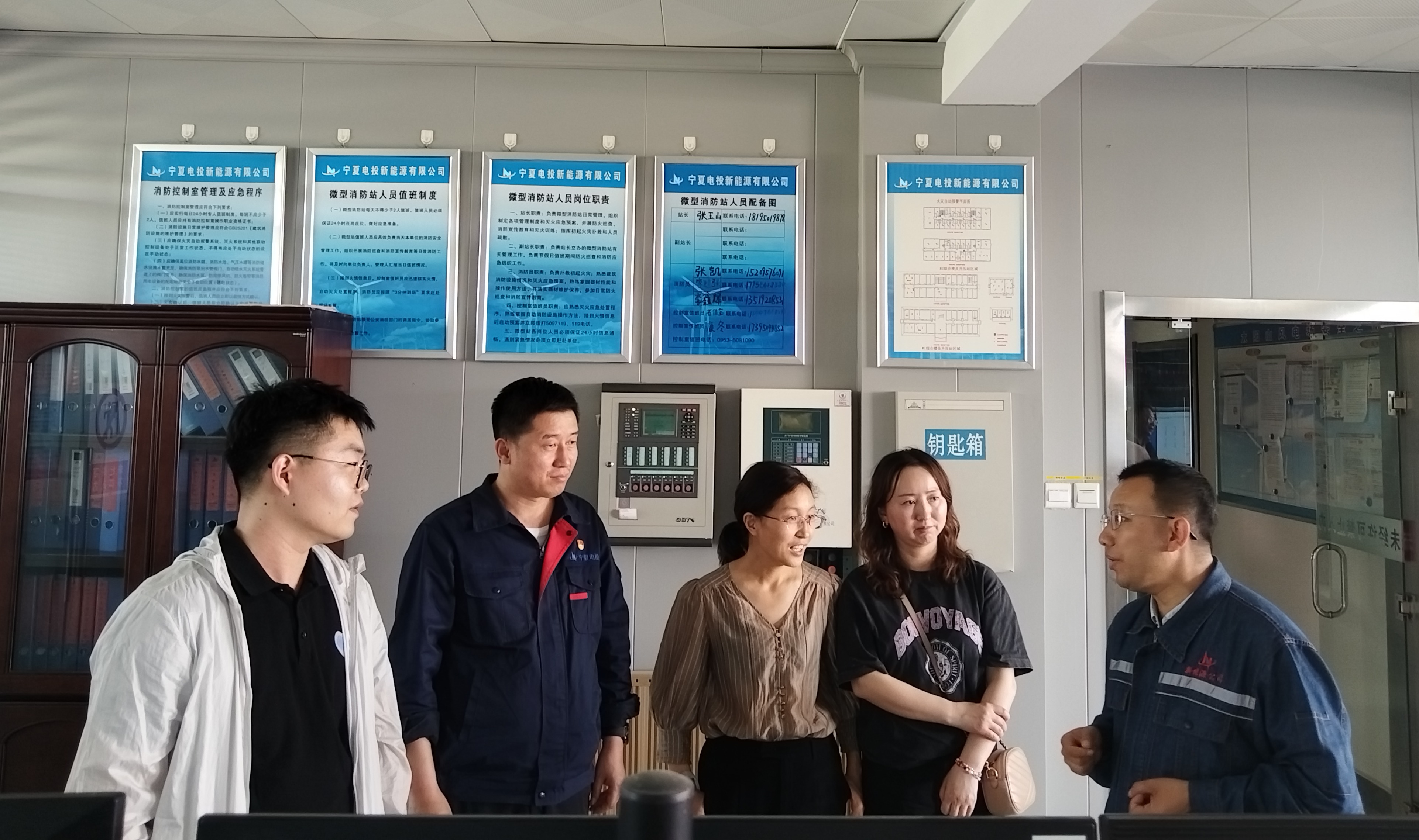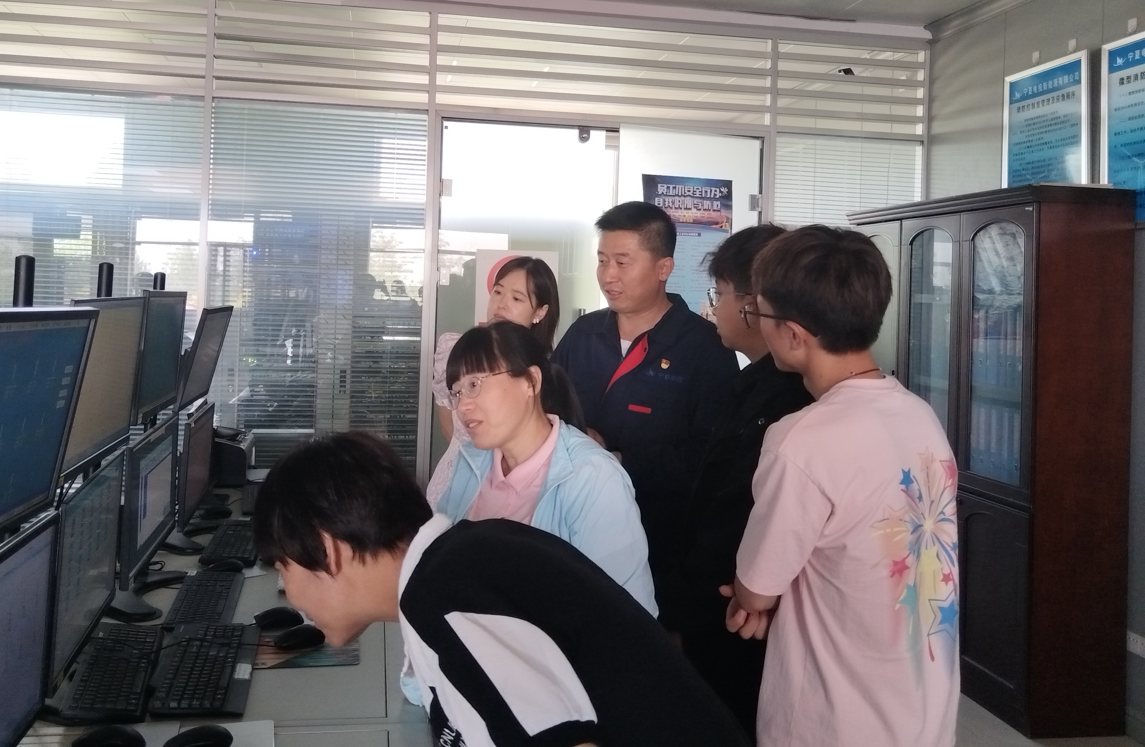 来到太阳山场站,在宁夏电投新能源公司党总支书记张怀畅等领导的带领和陪同讲解下,我系师生进入场站进行考察调研,深入了解的场站建设历程和发展规划、光伏风能电站的运营模式、技术创新、市场前景与发展趋势以及新能源在国家能源结构转型中的重要作用。