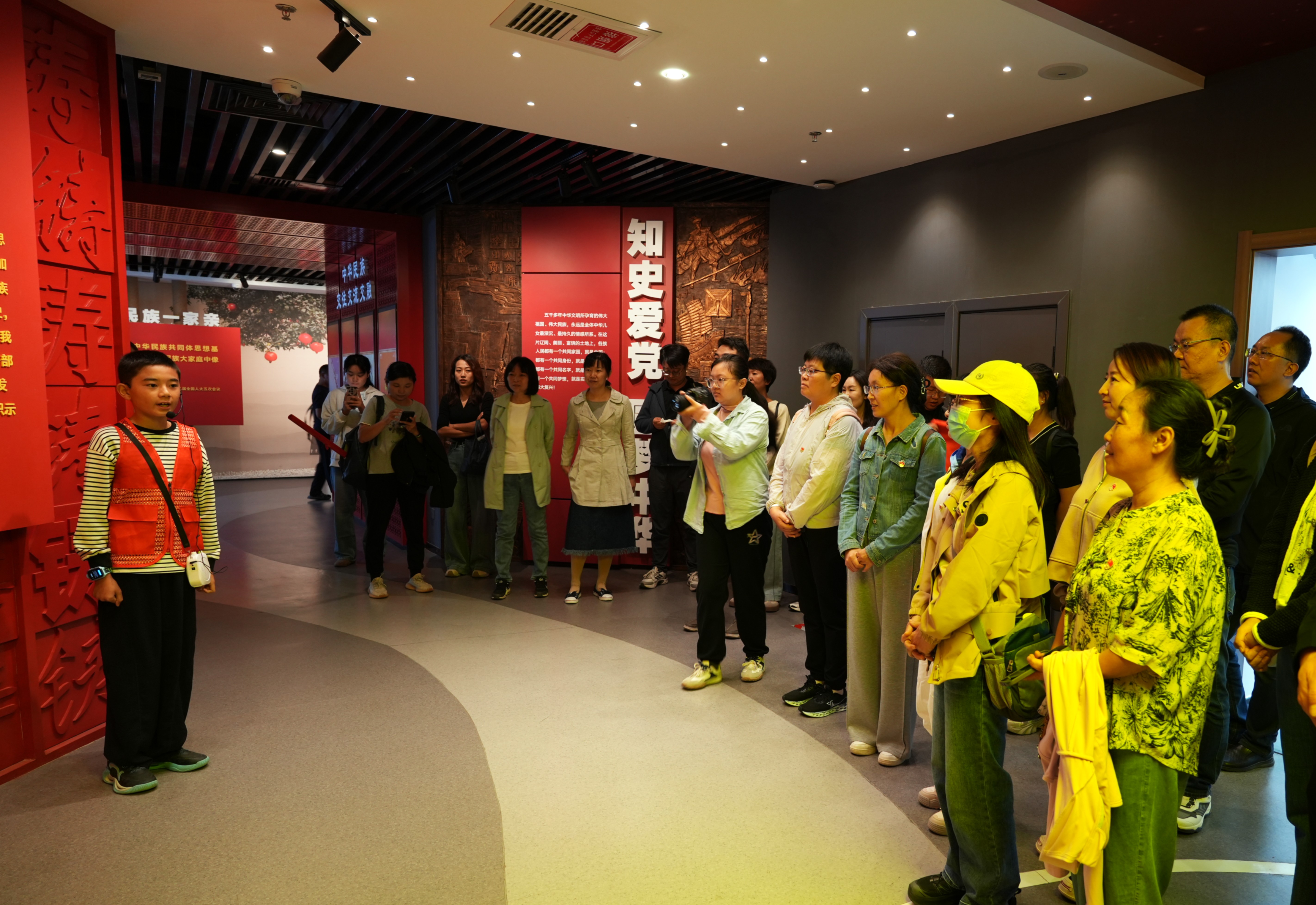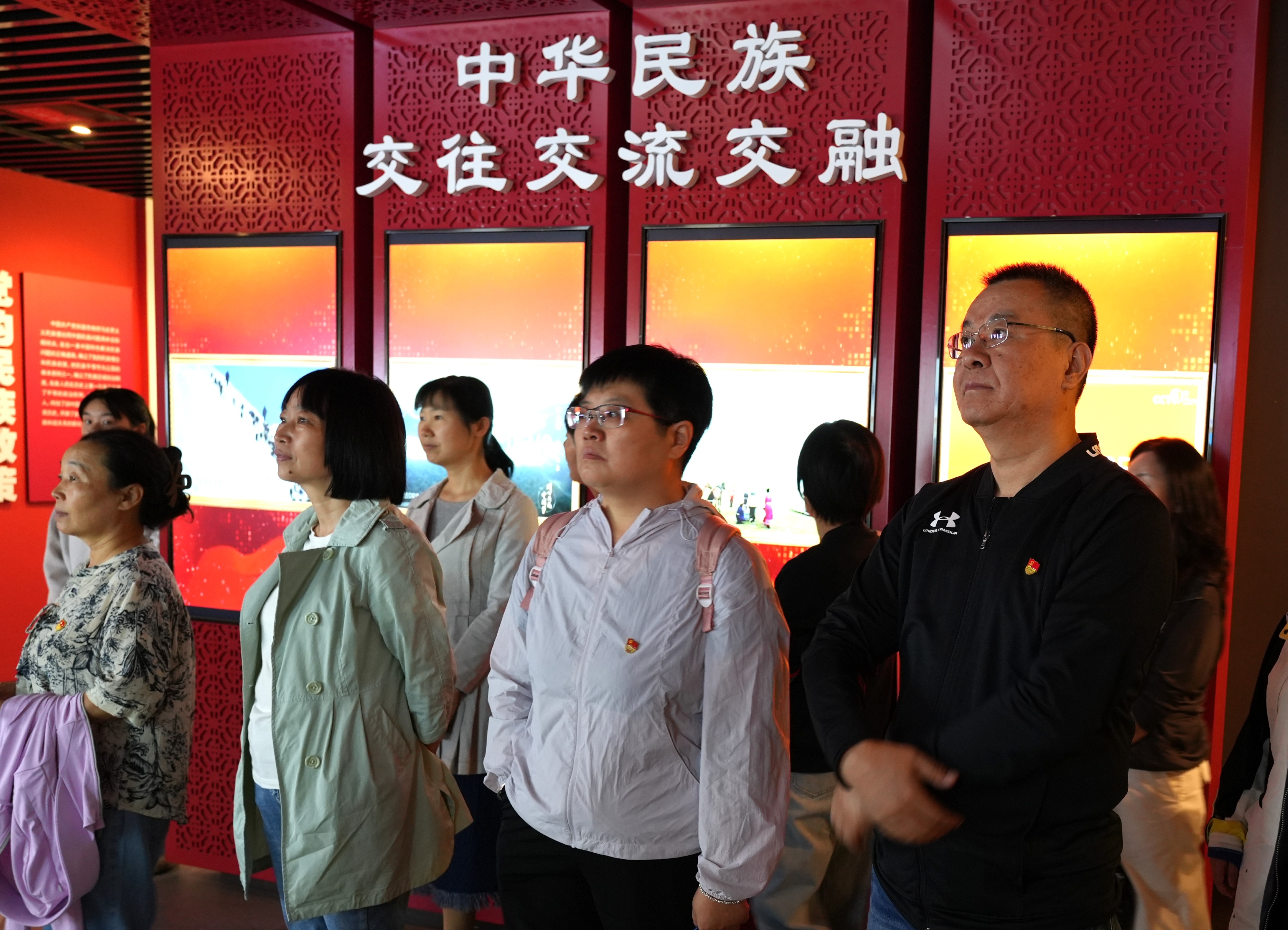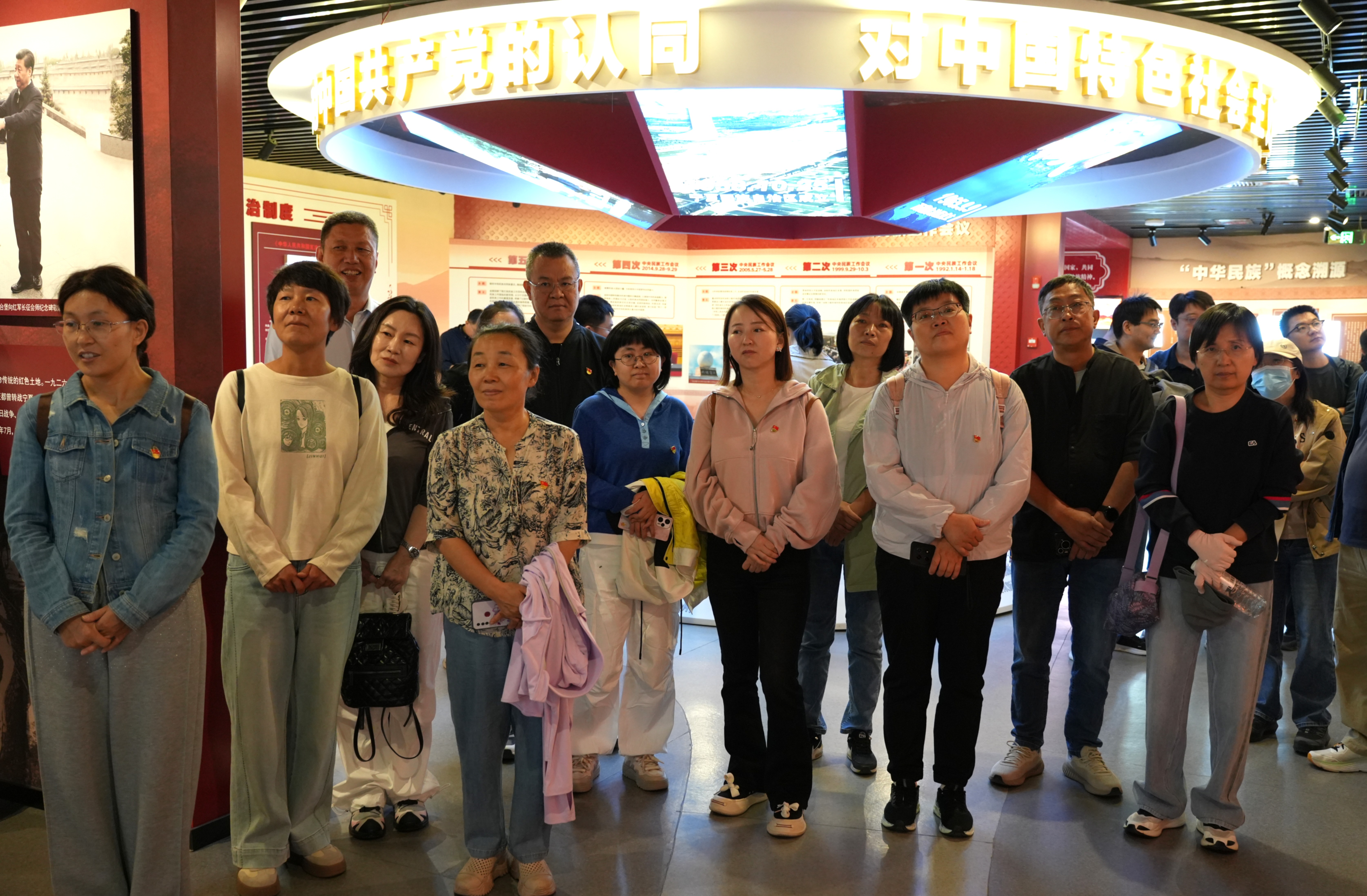 在利通区铸牢中华民族共同体意识教育基地,党员教师面向党旗,重温入党誓词,再次许下对党的忠诚誓言,进一步坚定为党育人、为国育才的初心使命。随后在讲解员的引领下,老师们认真参观了各主题展厅,通过详实的图文史料和丰富的实物展示,深入了解了中华民族多元一体的历史渊源与灿烂成就,深刻认识到铸牢中华民族共同体意识对于维护民族团结、实现中华民族伟大复兴的根本性意义,进一步增强了维护民族团结、铸牢中华民族共同体意识的思想自觉和行动自觉。