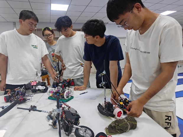 参赛同学冷静认真,仔细检查车模结构,及时应对各种问题,不仅展现了过人的技术才能,更彰显了团队协作与创新精神,两校同学在比赛中互相学习,共同进步。