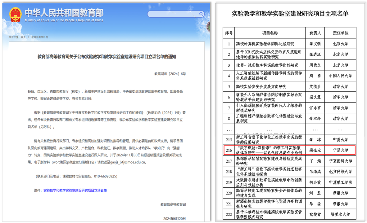 讯 蔺金元/文、图】近日,教育部高等教育司公布了2024年实验教学和教学实验室建设研究项目立项名单,在宁夏高校获批的5个项目中,新澳六合彩内幕