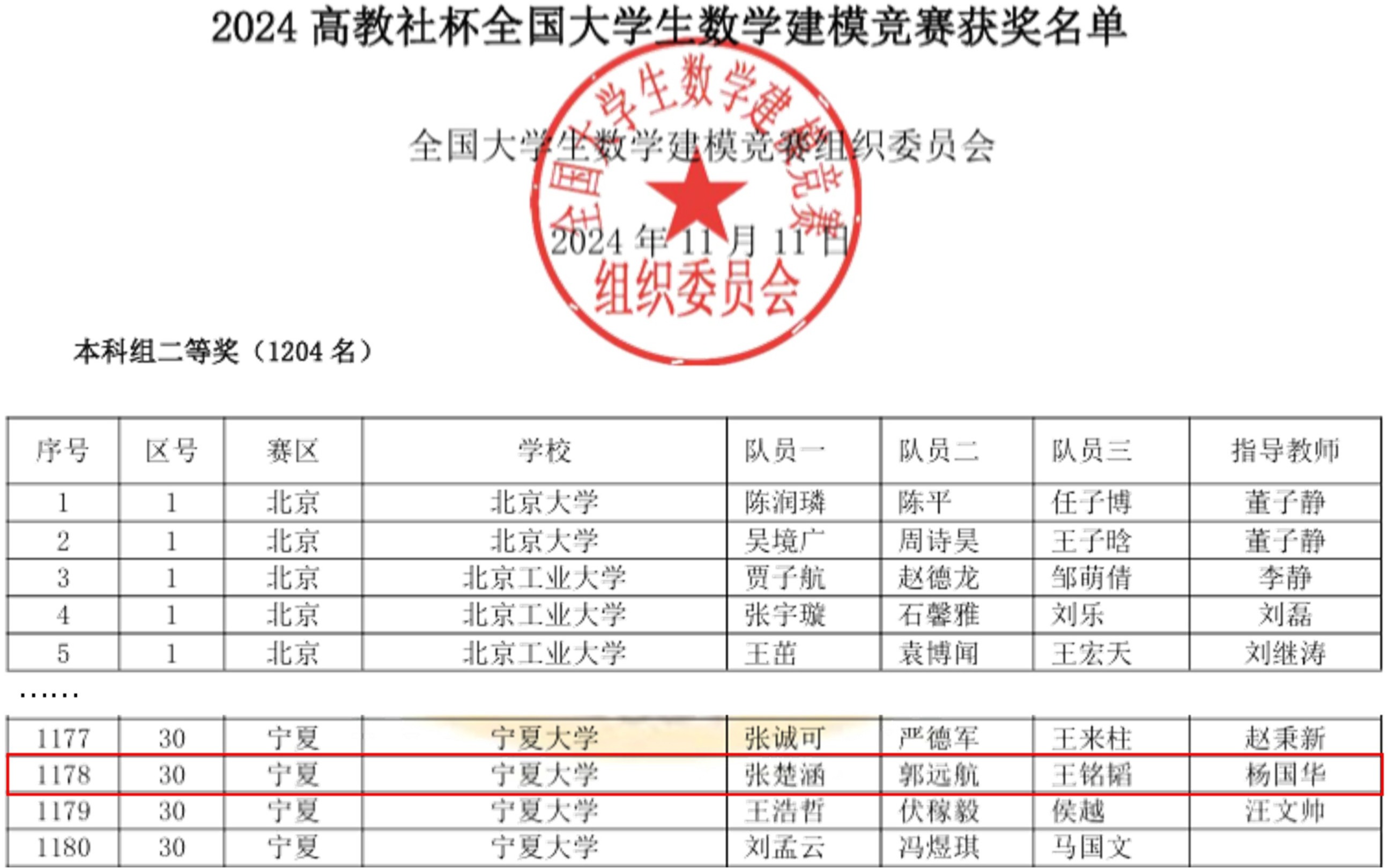 讯 杨国华/文、图】近日,由教育部高等教育司和中国工业与应用数学学会联合主办的2024年“高教社杯”全国大学生数学建模竞赛获奖名单公布,新澳六合彩内幕