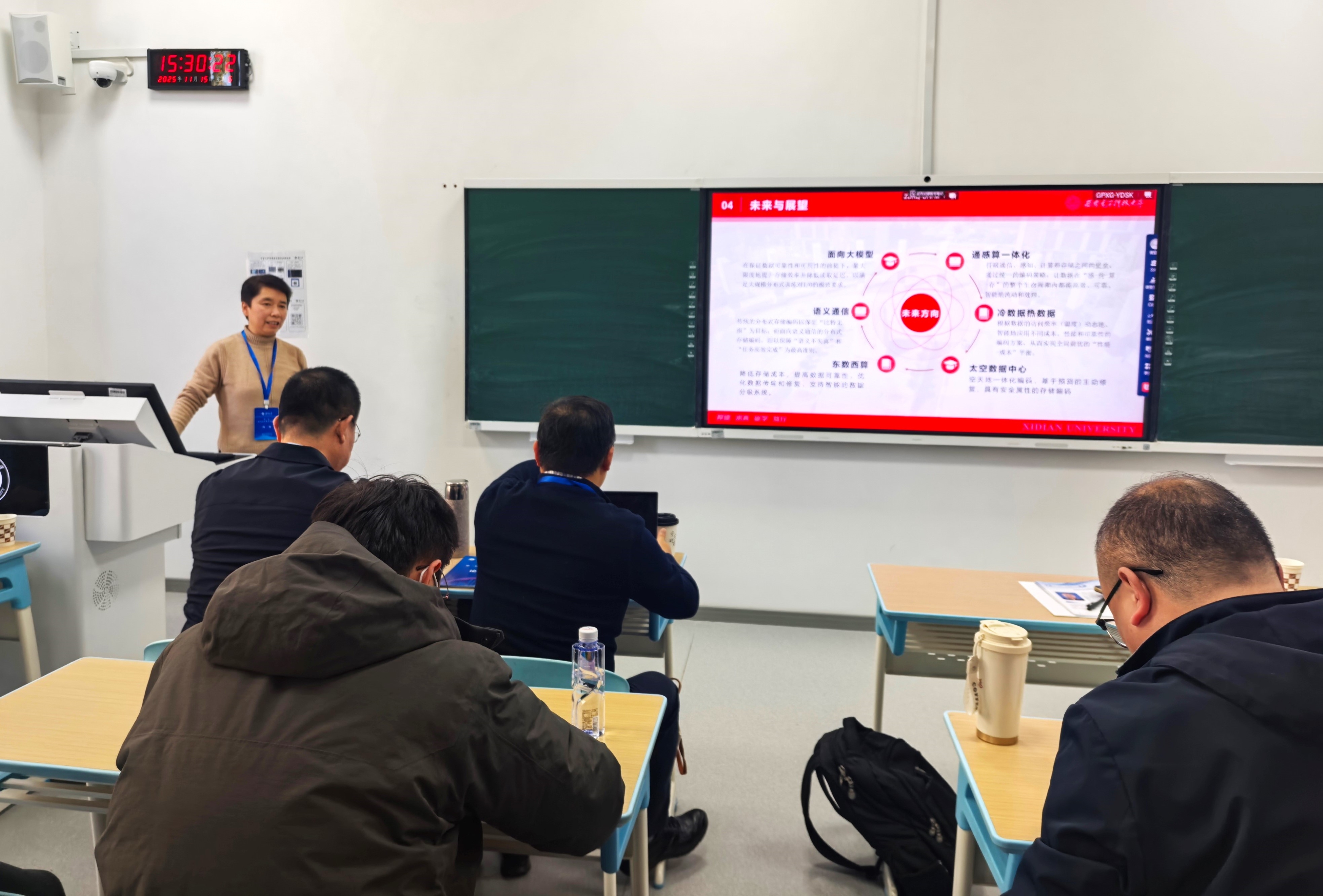 孙蓉副教授围绕“面向大数据存储的Piggybacking编码框架创新与优化”主题,带领师生深入探讨大数据时代存储基石的关键技术。她指出,分布式存储编码技术对保障数据可靠性与优化修复带宽至关重要。在众多方案中,Piggybacking编码凭借巧妙设计脱颖而出。她深入浅出地阐释了该编码通过在传统MDS编码结构中分两阶段“搭载”数据,引入精心设计的关联性,以较小的计算和存储代价实现修复带宽的显著降低,是平衡存储效率与修复性能的典范。其重点介绍了其团队在该编码框架下提出的若干创新结构,并分析了这些结构在提升各类节点修复能力、大幅降低修复带宽方面的卓越性能。