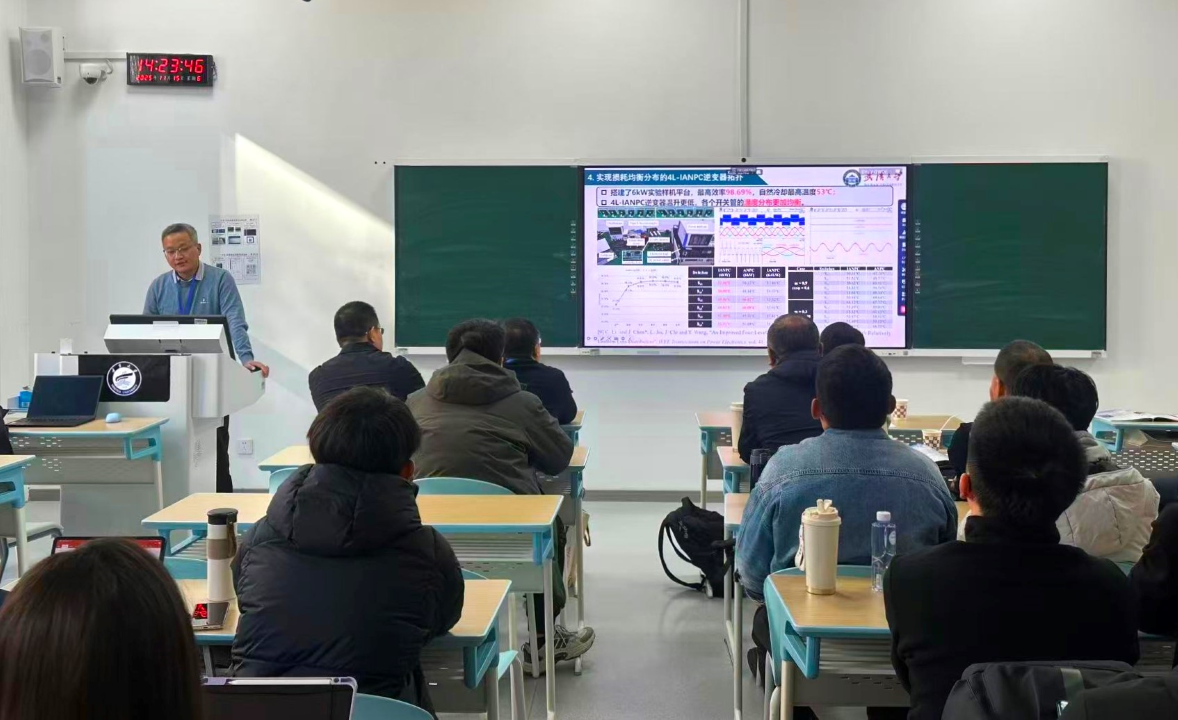 陈剑飞教授以“多电平变流器的技术演进与创新应用”为题,从多电平变流器的研究与应用现状切入,创造性地提出“四电平变流器等于两电平与三电平变流器之融合”的核心观点。他系统阐述了四电平变流器的拓扑结构及电压平衡调制方法,深入剖析了工程应用中的设计难点,介绍了多芯片并联四电流变流器与半桥功率模块设计的最新进展,并对四电平变流器在未来高功率密度、高效率电能变换领域的应用前景进行了展望,为师生勾勒出一条清晰的技术发展路径。