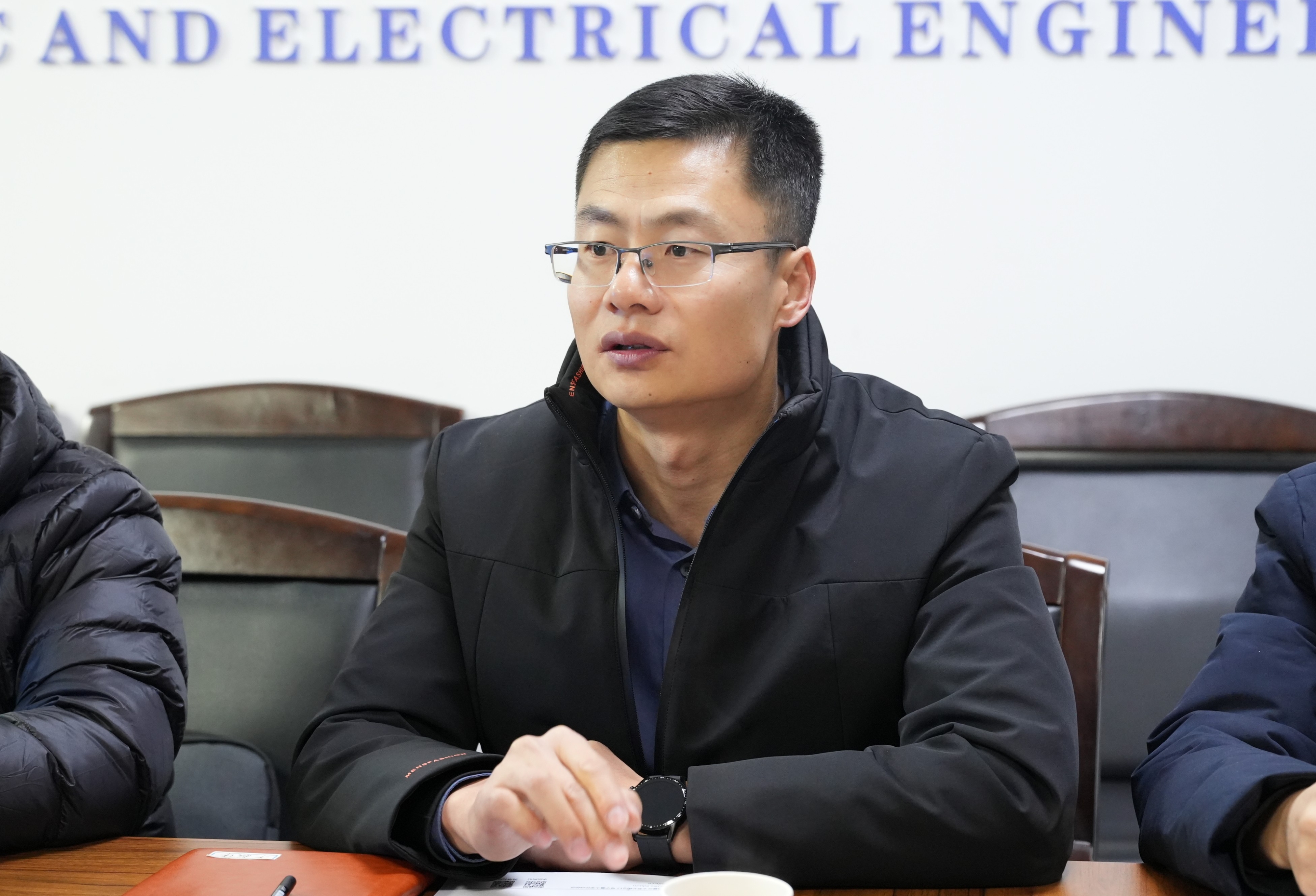 孙学宏代表学院对马冀平和于振洋一行莅临学院表示欢迎,介绍了学院的基本情况以及科研团队服务地方数字经济工作,与地方产业科研合作开展情况,同时对宁夏数字经济高质量建设发展提出团队研究建议。