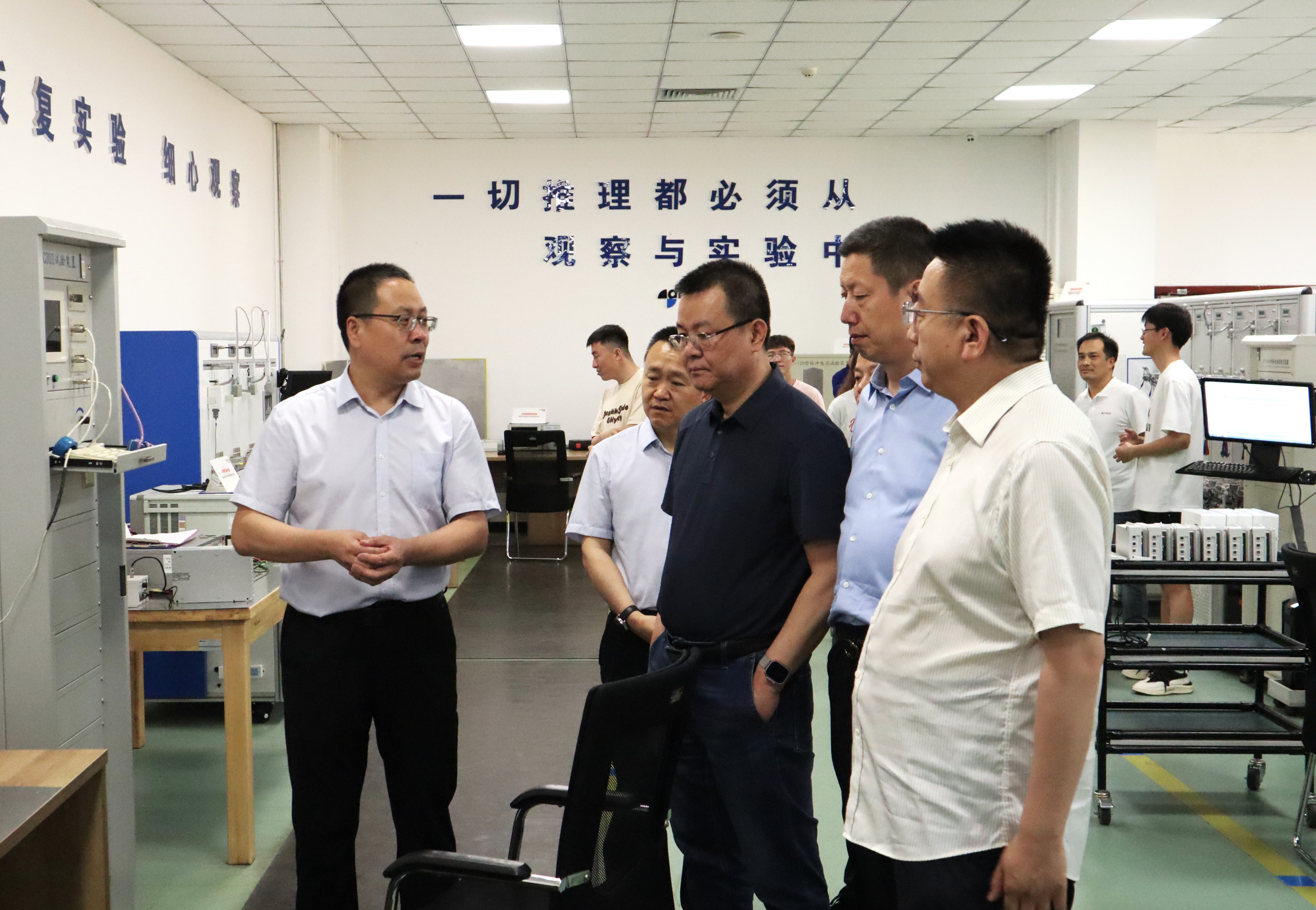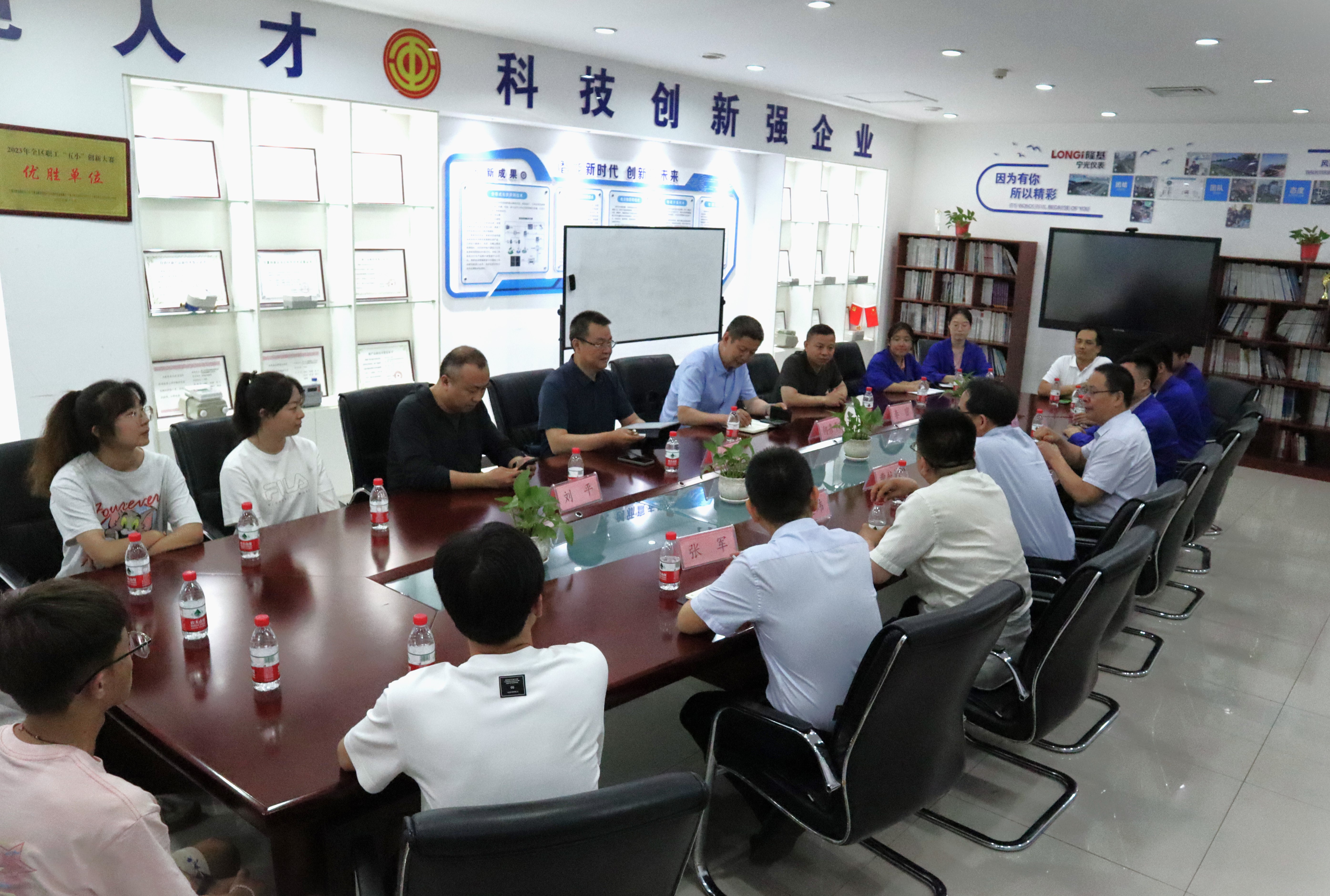 座谈会前,隆基宁光有限公司副总经理李建炜、常兴智、张军陪同学院书院一行参观了隆基宁光有限公司的展厅、研发中心和生产车间,详细了解了公司的产品和技术创新情况。