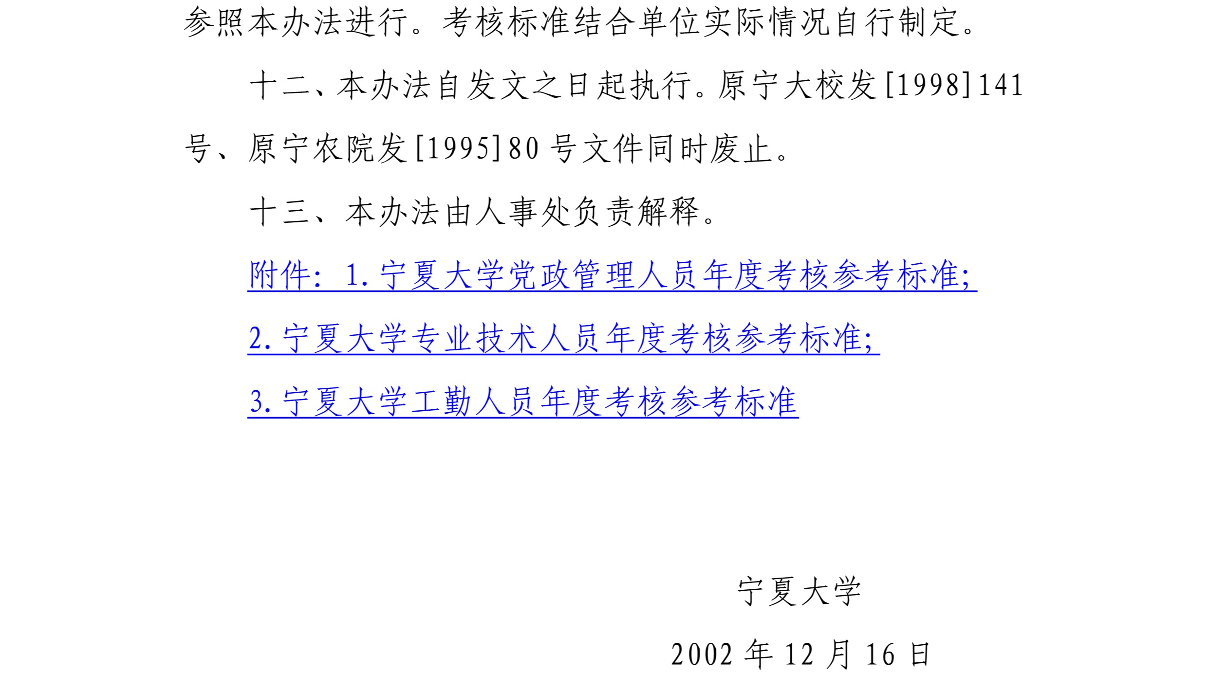 宁夏大学教职工年度考核实施办法(宁大校发〔2002〕271号)