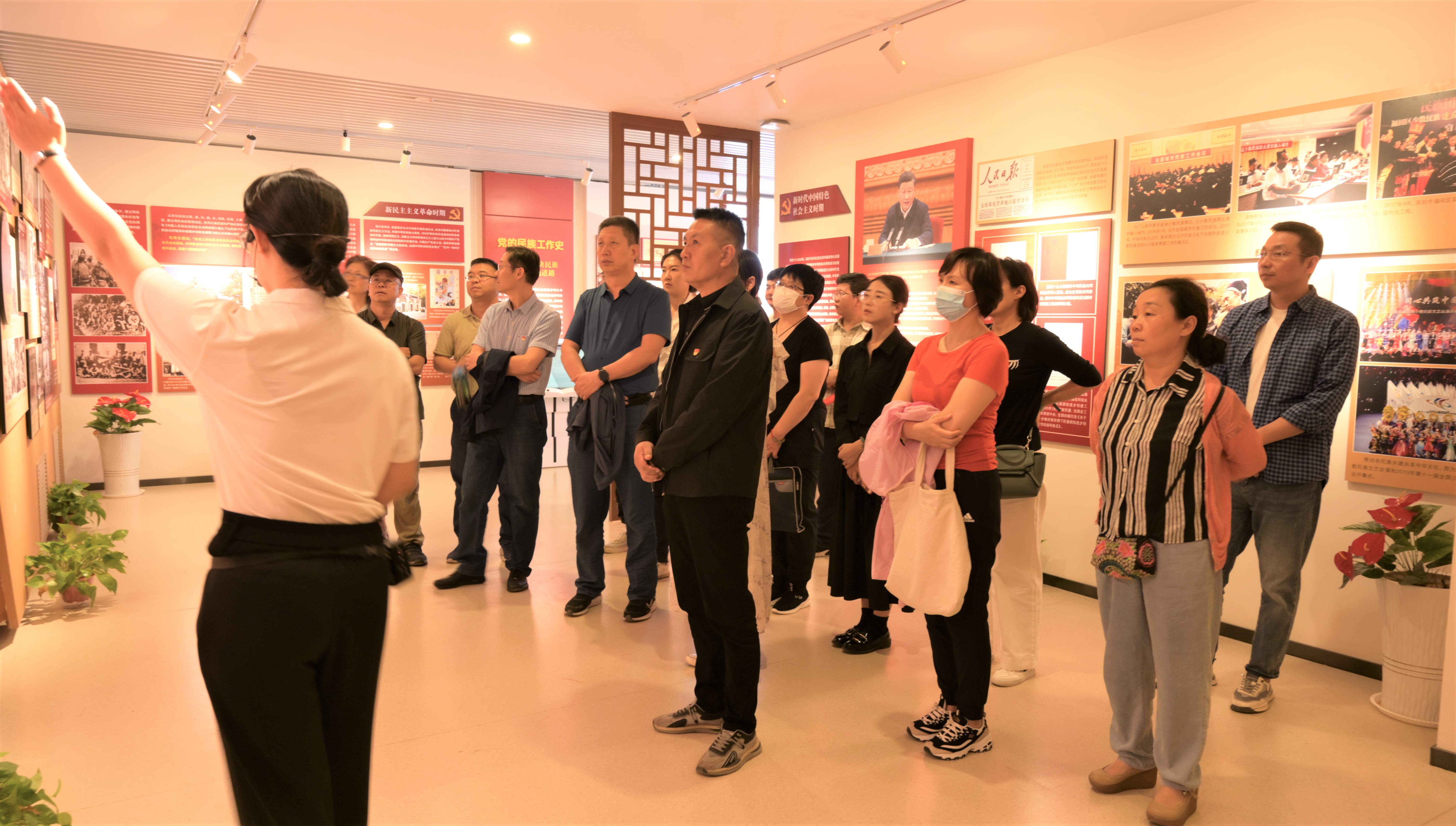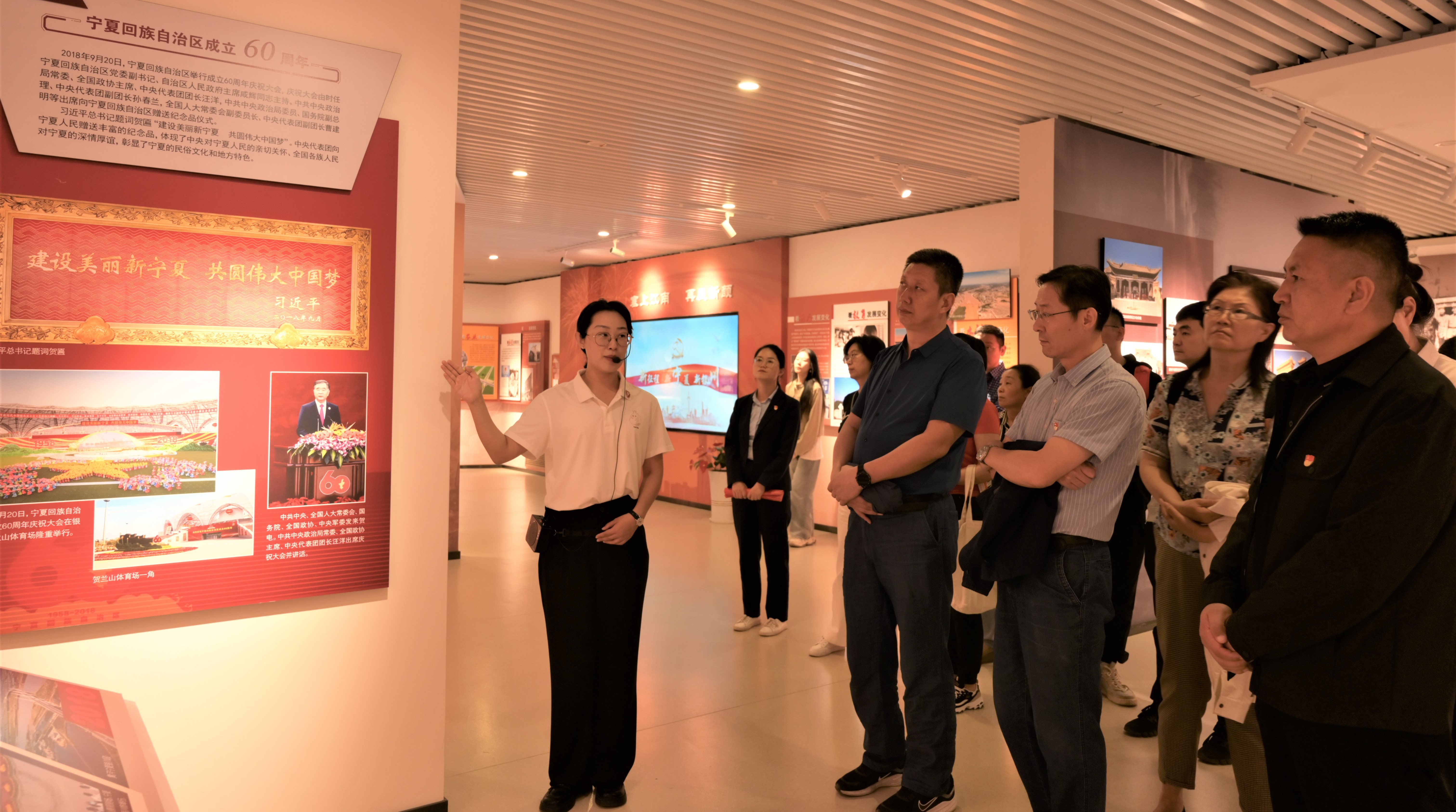 跟随讲解员的介绍,大家重温了党的民族工作史,进一步深刻体会到我们辽阔的疆域是各民族共同开拓的,我们悠久的历史是各民族共同书写的,我们灿烂的文化是各民族共同创造的,我们伟大的精神是各民族共同培育的。通过回顾红军西征在宁夏的故事和历次宁夏回族自治区成立的庆祝活动,看到了宁夏回族自治区成立六十五年来在医疗、教育、交通、水利、电力等方面的变化,也为我区被评为“民族团结进步示范区”而感到骄傲和自豪。