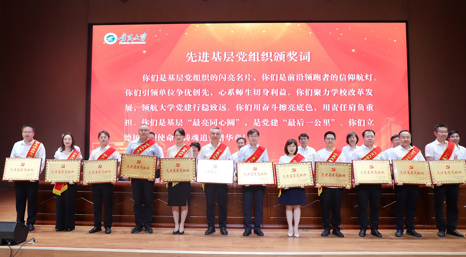 讯 宁夏大学新澳六合彩内幕-新澳彩资料】在“七一”建党节来临之际,为充分发挥基层党组织战斗堡垒作用和广大党员先锋模范作用,激励全校师生党员不忘初心、锐意进取,担当作为、真抓实干,在推进学校事业高质量发展中再立新功,6月28日,学校召开“七一”表彰大会,与会领导为受表彰党员、党务工作者和基层党组织代表颁发纪念章、证书、奖牌。