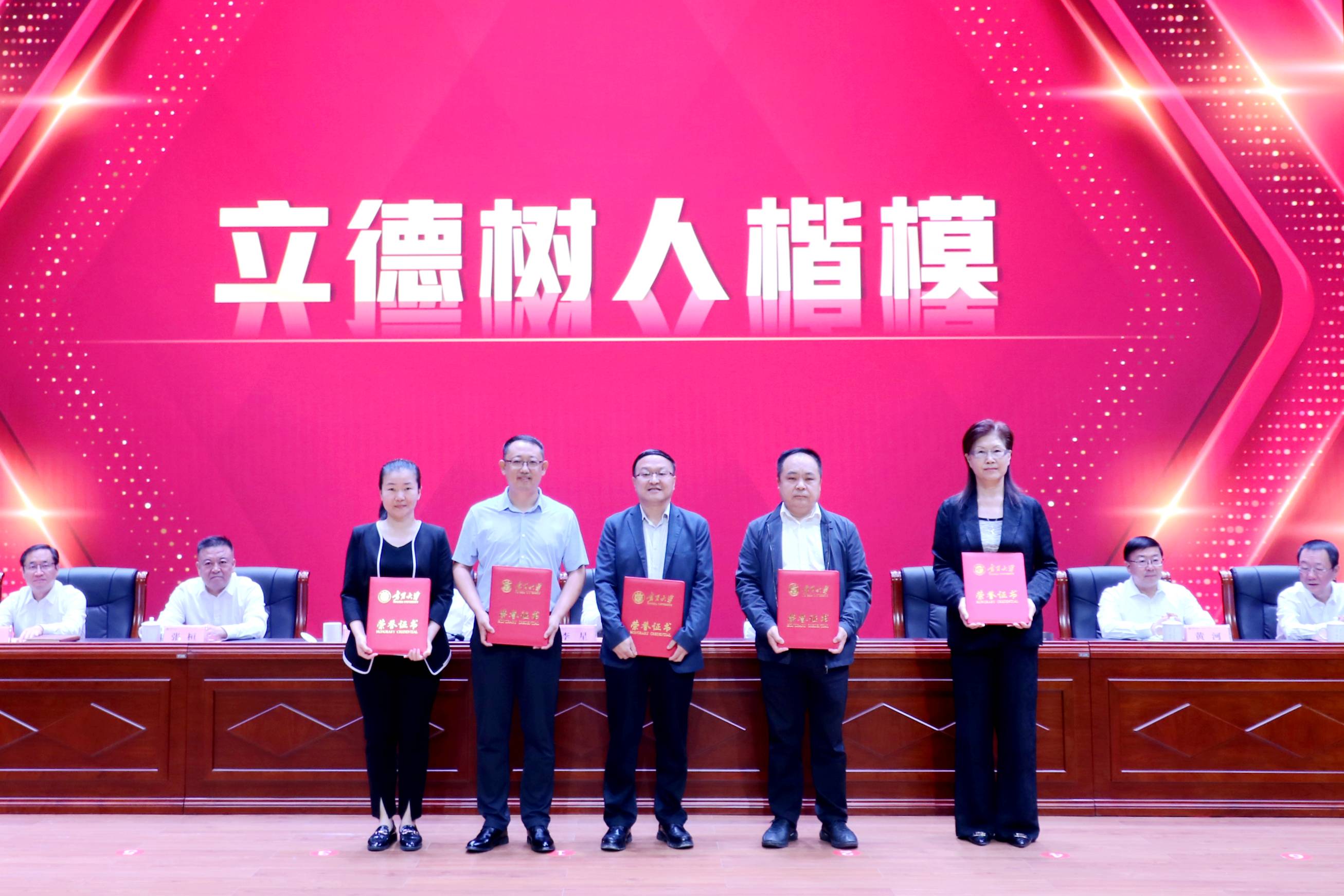 从教满35年教师汤全武教授,“立德树人楷模”获奖教师汪西原教授,全国和全区高校教师教学创新大赛获奖教师、全国和全区青年教师教学基本功大赛获奖教师宋佳乾等三位教师获表彰现场上台领奖,青年博士陈鹏参加宁夏大学新入职教师入职宣誓仪式。