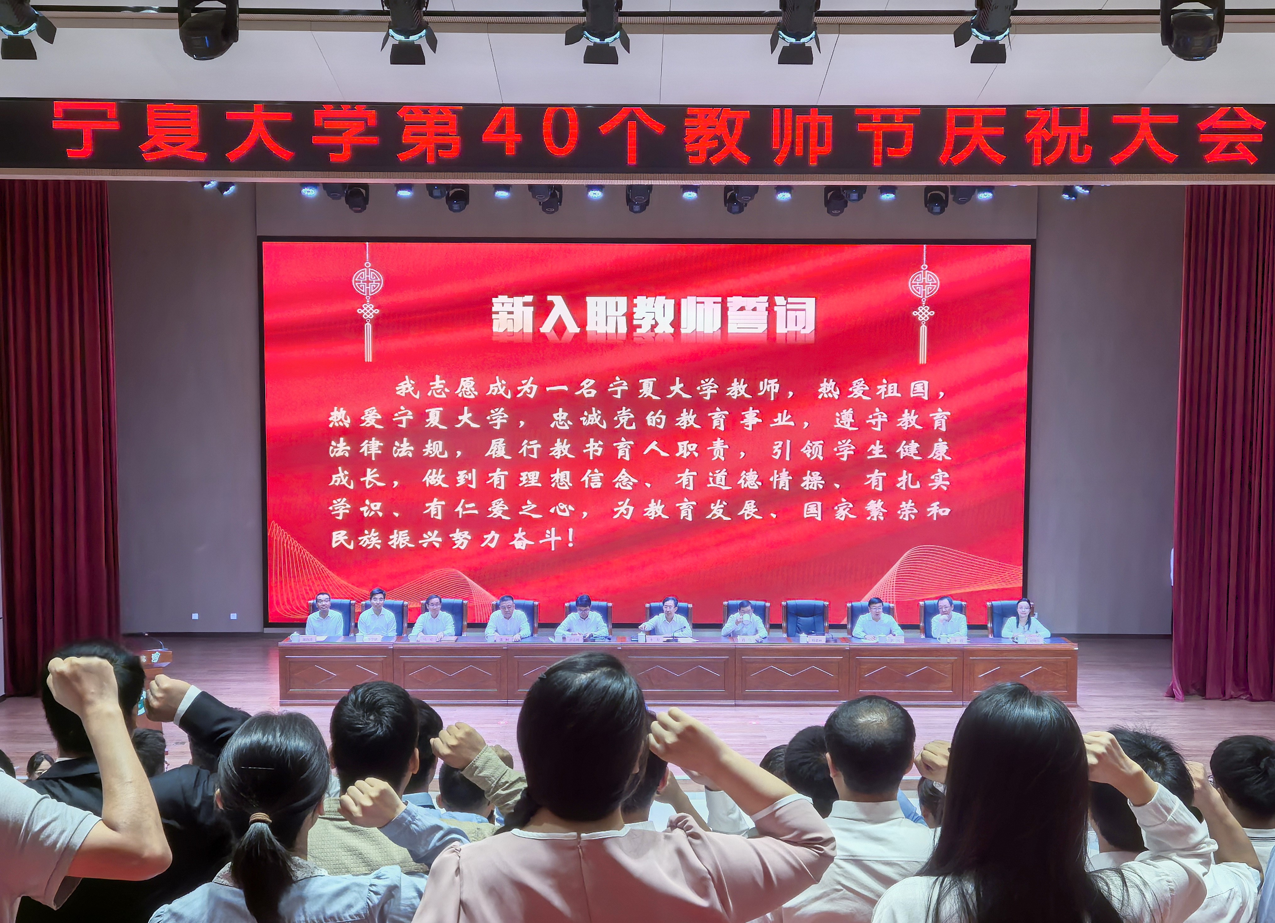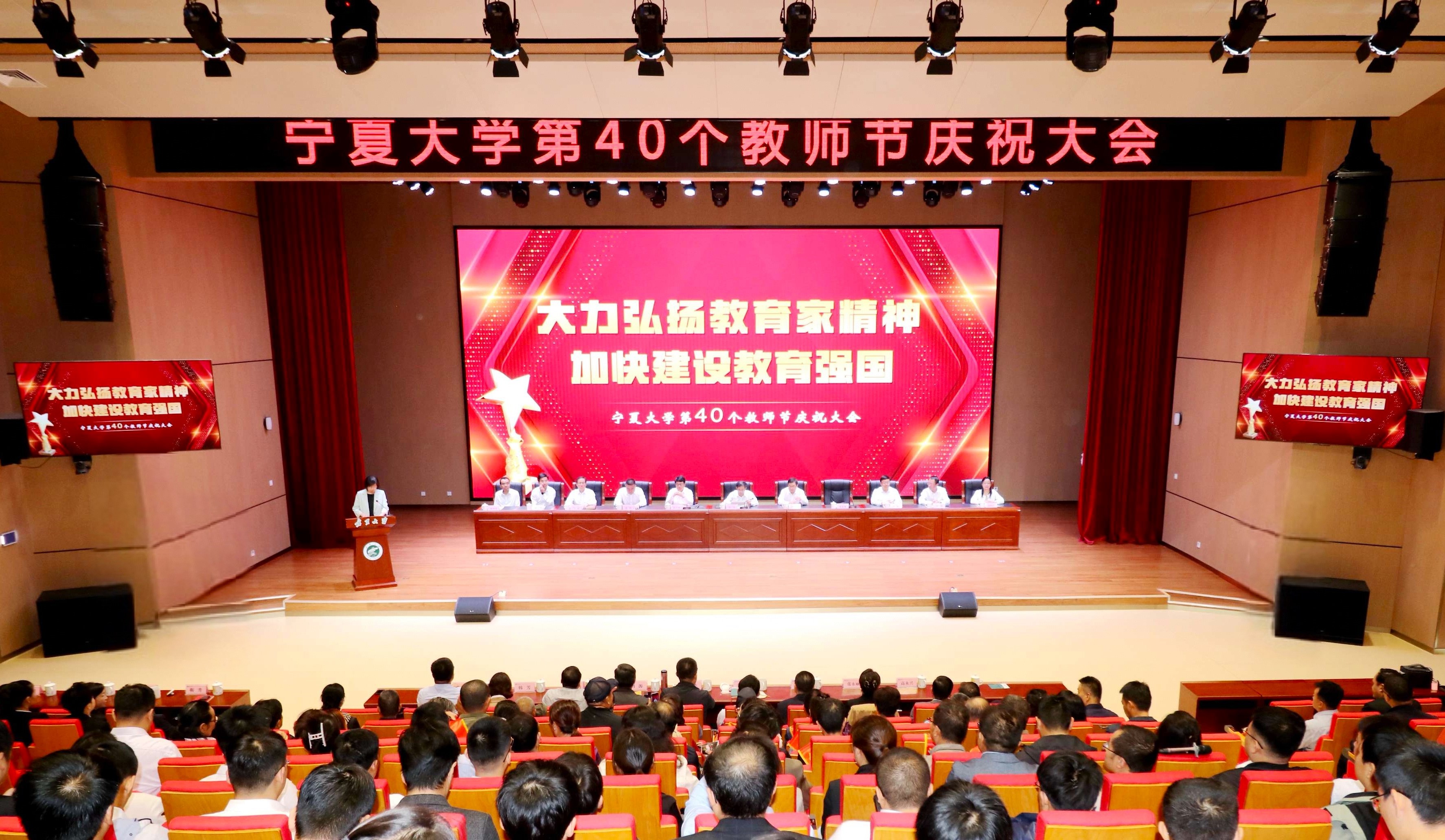 讯 宁夏大学新闻网】9月10日,在第40个教师节到来之际,我校在贺兰山校区笃行楼举行“大力弘扬教育家精神 加快建设教育强国”宁夏大学第40个教师节庆祝大会。