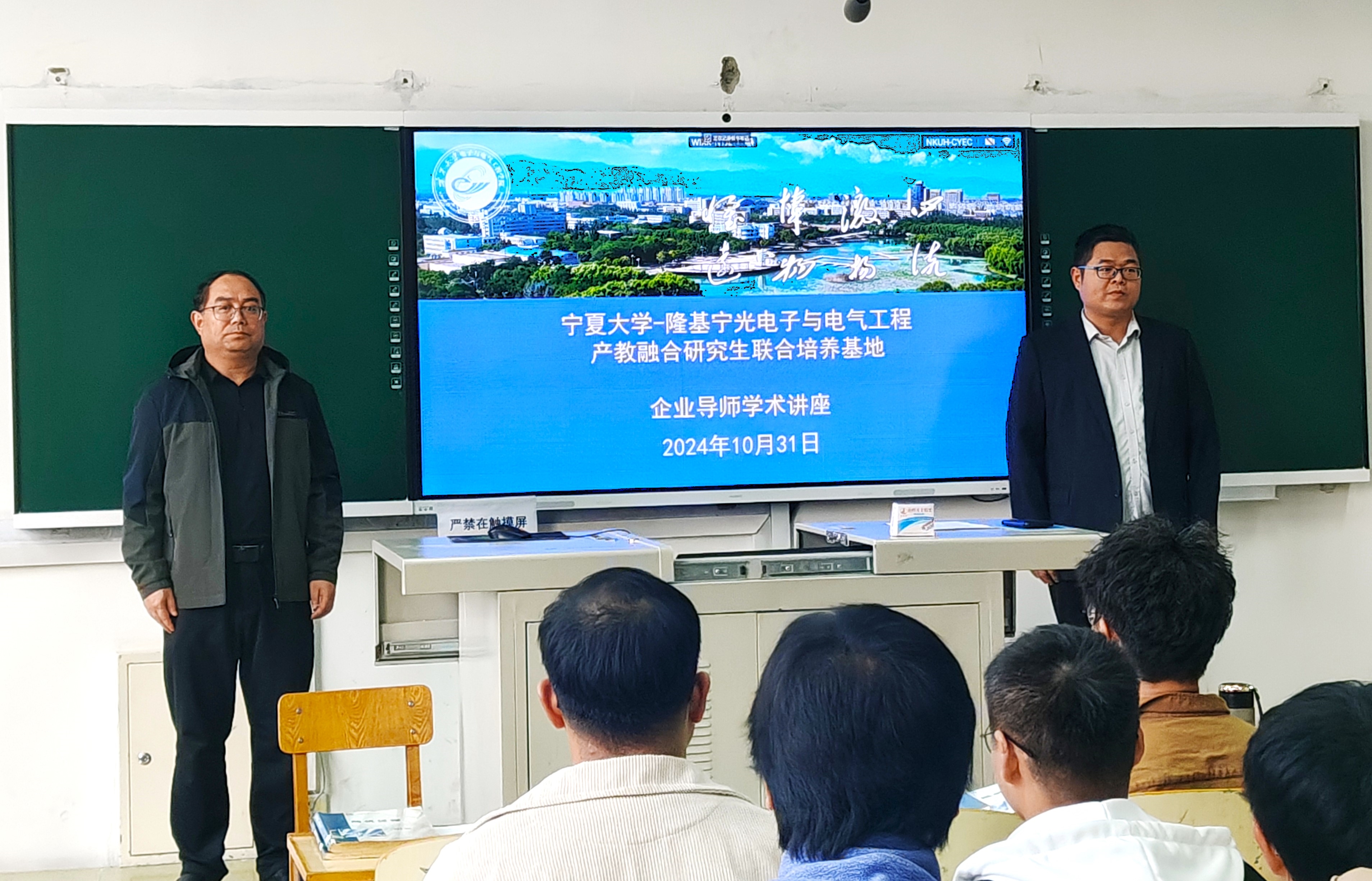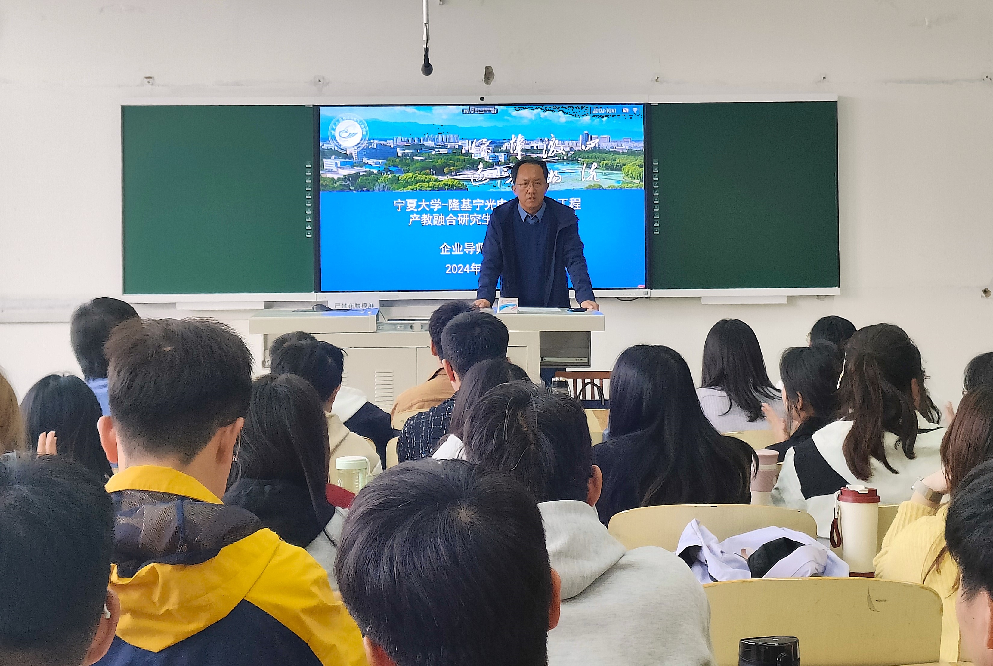 【新澳六合彩内幕 讯 郭中华/文、图】为进一步加强产教融合,促进学术研究与企业需求的深度对接,提升研究生培养质量,10月31日,新澳六合彩内幕 在怀远校区怀远一教举办宁夏大学-隆基宁光电子与电气工程产教融合研究生联合培养基地企业导师学术讲座。讲座由学院副院长郭中华主持。
