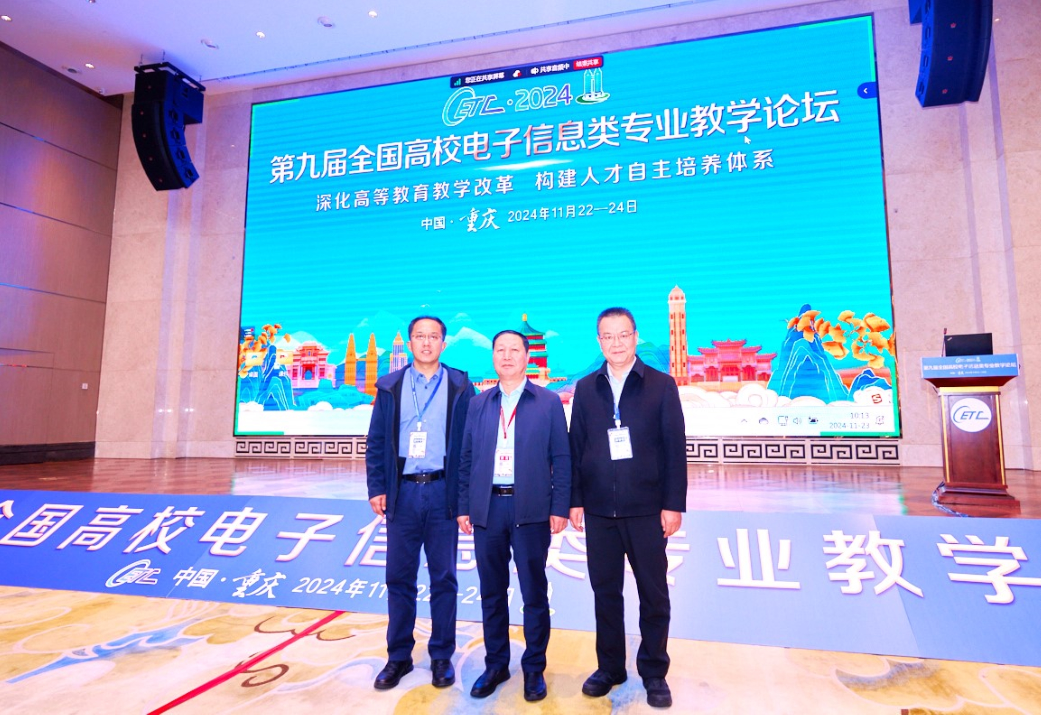 第九届全国高校电子信息类专业教学论坛由教育部高等学校电子信息类专业教学指导委员会主办,重庆大学承办,清华大学出版社协办。论坛围绕“深化高等教育教学改革,构建人才自主培养体系”主题,特邀中国工程院何友院士、长春理工大学付跃刚教授、重庆邮电大学陈前斌教授、重庆大学曾孝平教授、东南大学余超教授、华中科技大学梁琨教授、北京大学王志军教授、北京交通大学陈后金教授、南京理工大学王建新教授、清华大学朱桂萍教授、北京邮电大学杨鸿文教授、西安电子科技大学任爱锋教授、安谋科技(中国)宋斌先生分享教学改革经验与成果,为各高校电子信息类院系负责人、专业负责人、核心课程负责人及实践教学负责人搭建专业建设与教学经验交流的平台。