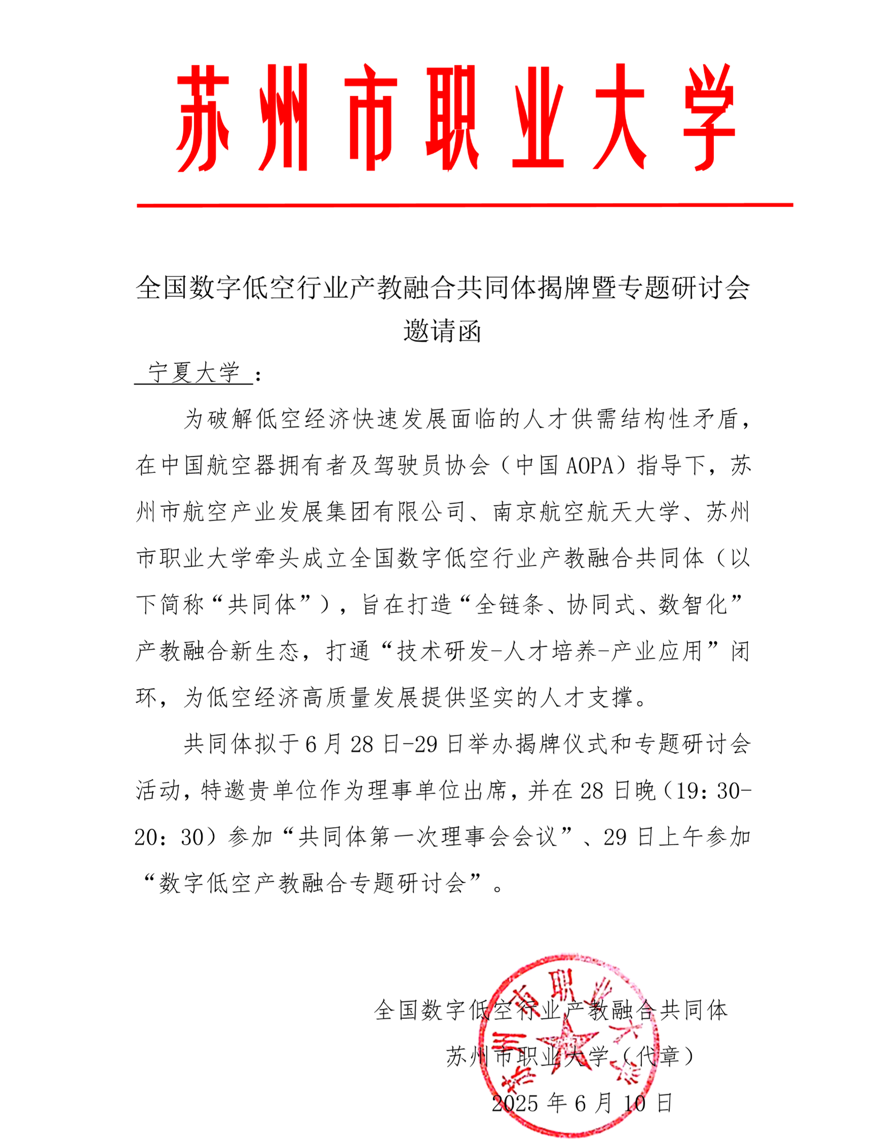 受邀参加共同体揭牌仪式及首次理事会会议。共同体在中国航空器拥有者及驾驶员协会(中国AOPA)指导下,由苏州市航空产业发展集团有限公司、南京航空航天大学、苏州市职业大学牵头成立,致力于构建“全链条、协同式、数智化”产教融合新生态。学院教师积极参与了“数字低空产教融合”“低空经济产学研合作和人才培养”等专题研讨会,与业界同仁深入交流学习。