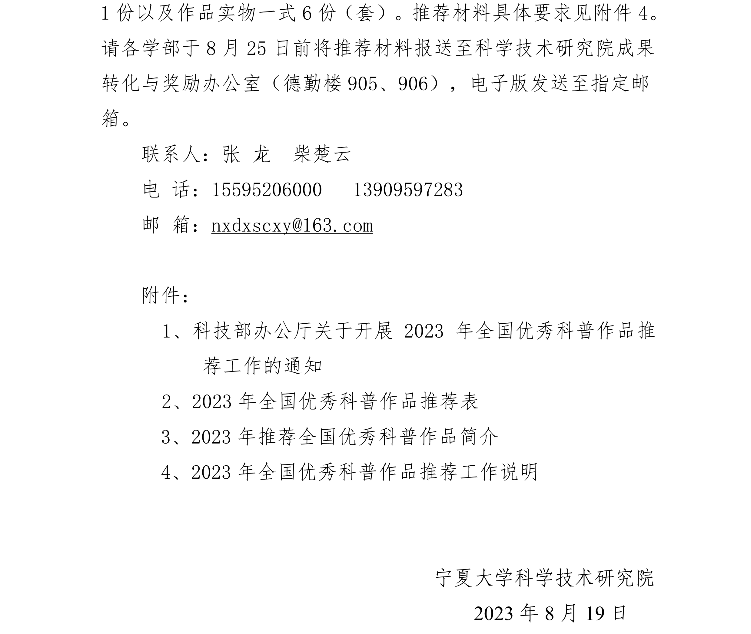 科技部办公厅关于开展2023年全国优秀科普作品推荐工作的通知.pdf