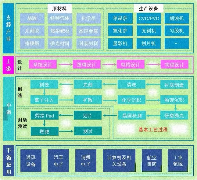 集成电路产业链是一个高度集成、技术密集、资本密集和人才密集的产业系统,是信息技术产业的核心,是支撑经济社会发展和保障国家安全的基础性、战略性和先导性产业。它主要包括上游的原材料、设备及芯片设计工具供应,中游的芯片设计、制造和封装测试,以及下游的终端系统应用。集成电路的发展趋势呈现出技术创新、市场增长、应用拓展和政策支持等多重特点。未来,随着技术的不断进步和市场的不断扩大,集成电路产业将迎来更加广阔的发展前景。