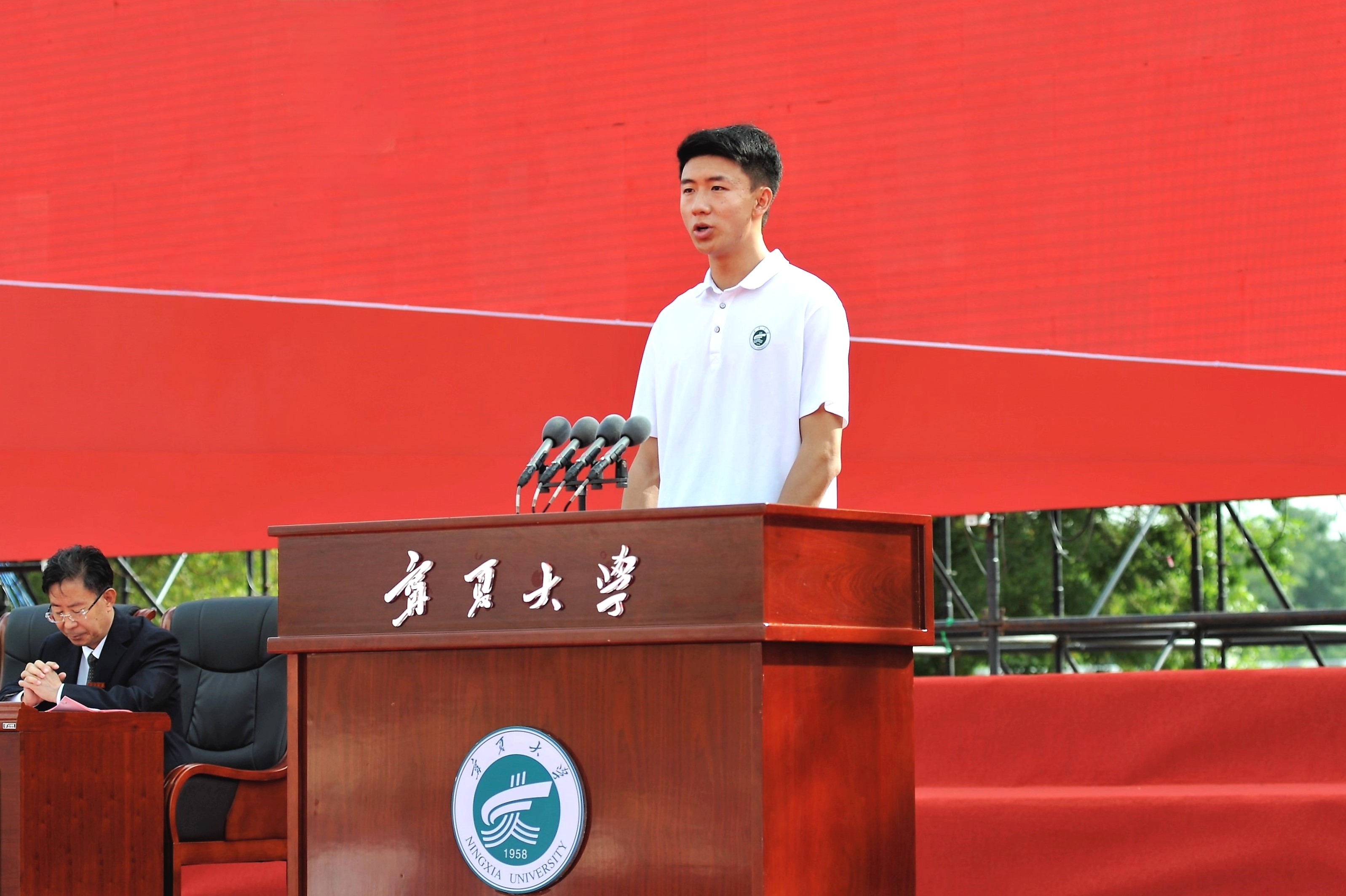 在开学典礼发言中,肖博文结合自己在校的学习生活经历、社会实践活动经历及个人成长的收获和感悟,号召同学们握好“不怕困难,不畏风寒,根深叶茂,本固枝荣”的“沙枣树精神”接力棒,牢记习近平总书记的谆谆教导,立志做有理想、敢担当、能吃苦、肯奋斗的新时代好青年,让青春在强国建设和民族复兴的火热实践中绽放绚丽之花。